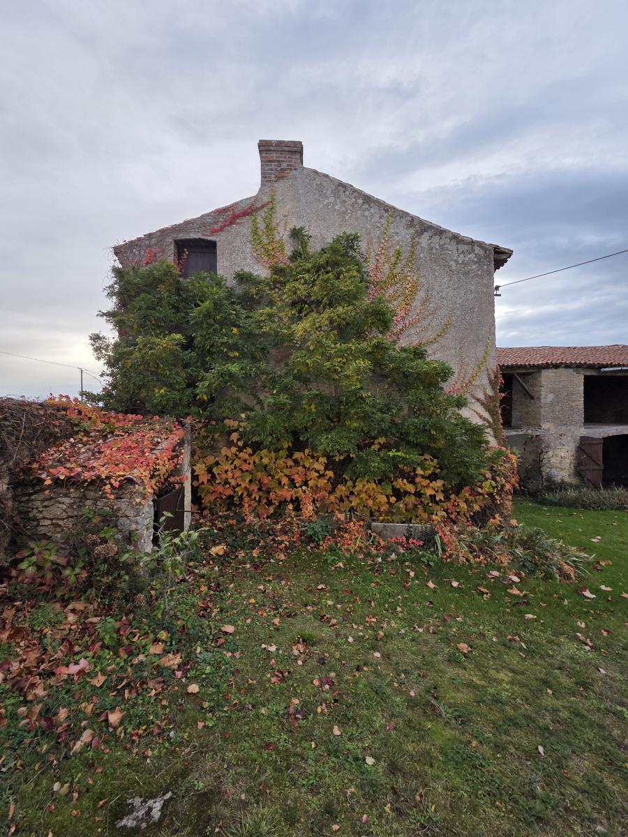 Seconde maison plus ancienne : trois pièces de plain-pied et grenier aménageable à l’étage.