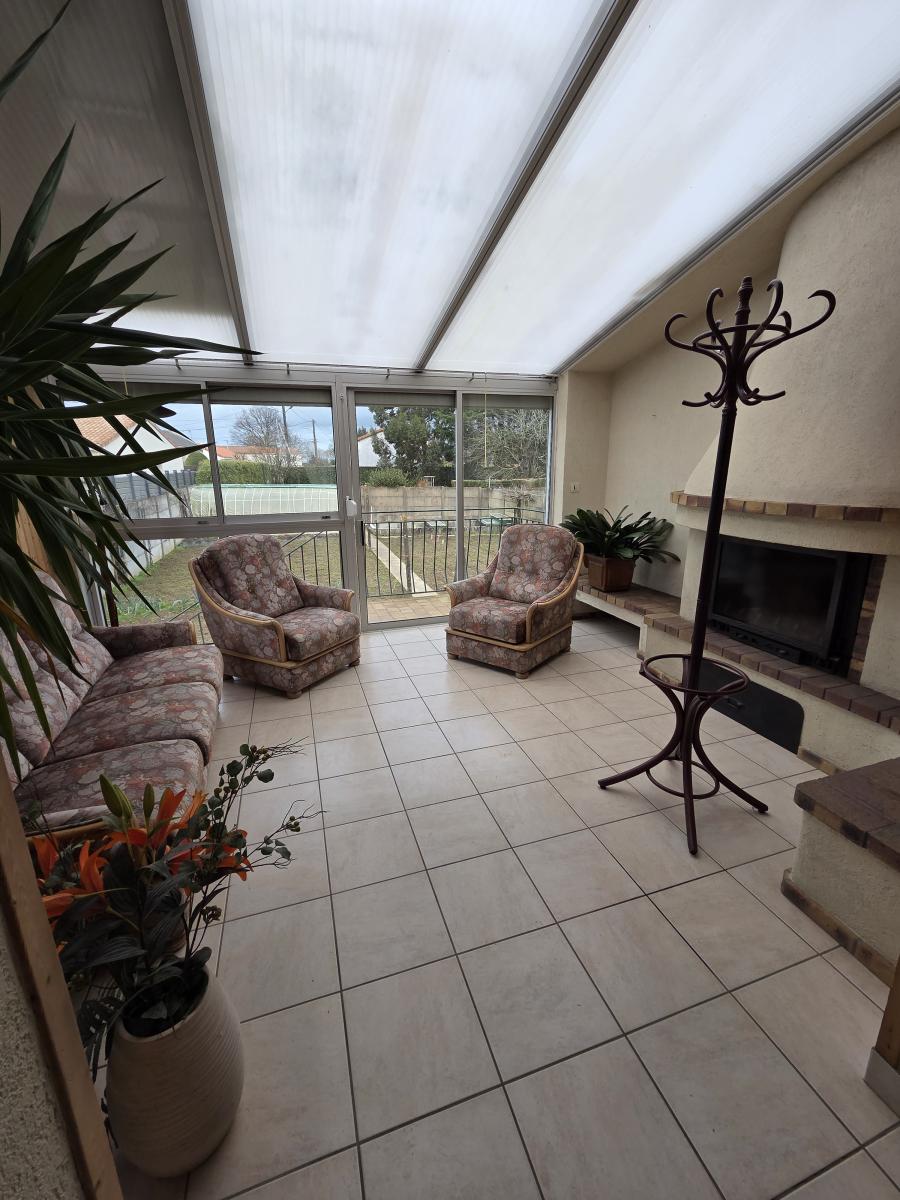 À l’étage : salon-séjour lumineux, cuisine aménagée et équipée, véranda avec cheminée, salle d’eau et 3 chambres.
