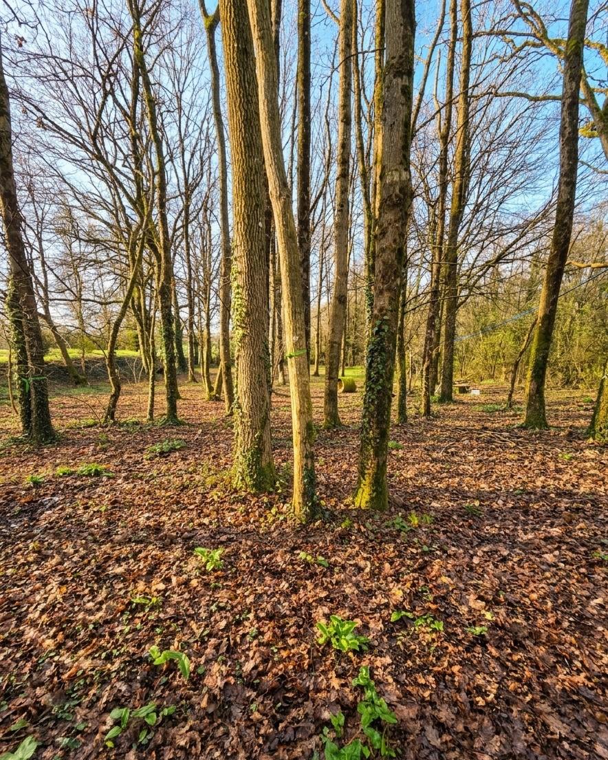 Terrain arboré avec différentes essences, dont chêne, châtaignier et aulne, offrant un environnement naturel et préservé
